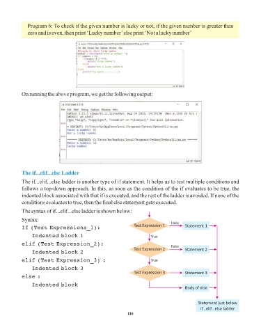 The if...elif...else ladder is another type of if statement. It helps us to test multiple conditions and