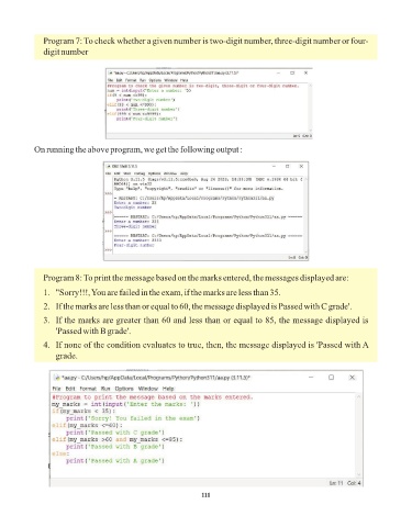 Program 8: To print the message based on the marks entered, the messages displayed are: