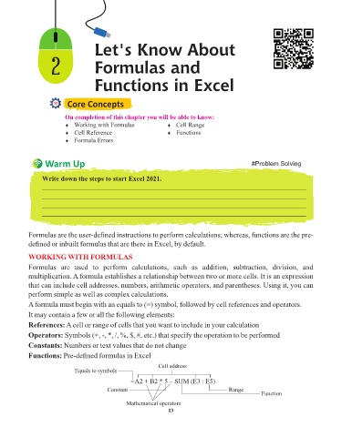 =A2 + B2 * 5 – SUM (E3 : E5)