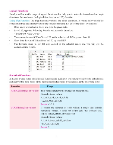 • You can see the result "Pass" in cell E2 as the value in cell D2 is greater than 50.