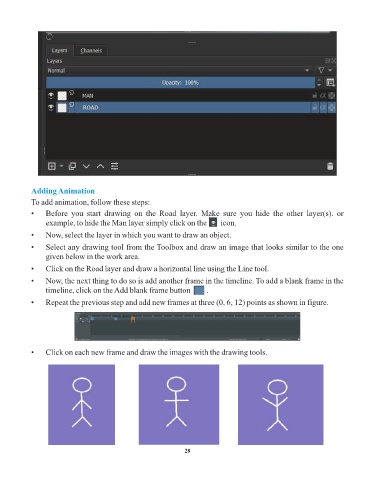 • Click on each new frame and draw the images with the drawing tools.