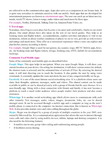 For example, Google Maps is used for navigation; sky scanner, ixigo, IRCTC Mobile apps, Kiwi,