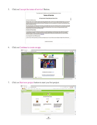5. Click on I accept the terms of service! Button. 6. Click on Continue to create an app . 7. Click on Start new project button to start you first project. 40 Computer-7