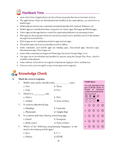 1. Mobile apps can be classified into ____________ types. OMR Sheet