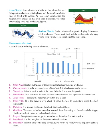 Surface Charts: Surface charts allow you to display data across