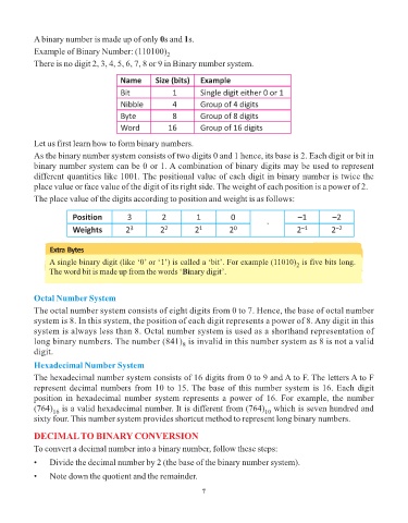 place value or face value of the digit of its right side. The weight of each position is a power of 2.