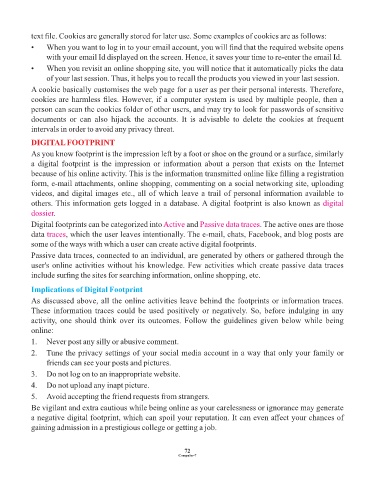 text file. Cookies are generally stored for later use. Some examples of cookies are as follows: