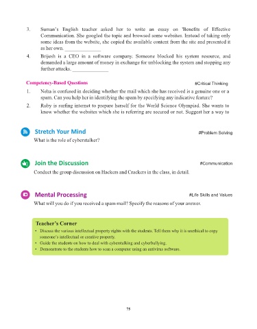 • Discuss the various intellectual property rights with the students. Tell them why it is unethical to copy