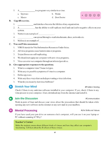 4. ______________ can spread through e-mail attachments, discs, networks etc.