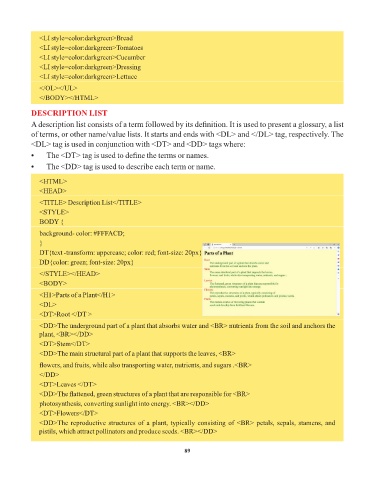of terms, or other name/value lists. It starts and ends with <DL> and </DL> tag, respectively. The