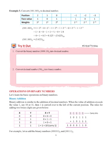 (101.101) = 1 × 2 + 0 × 2 + 1 × 2 + 1 × 2 + 0 × 2 + 1 × 2 –3