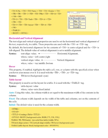 the text, respectively, in a table. These properties are used with the <TH> or <TD> tag.