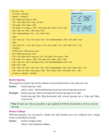 border-spacing:10px 20px-horizontal and vertical spacing set to 10px and 20px,