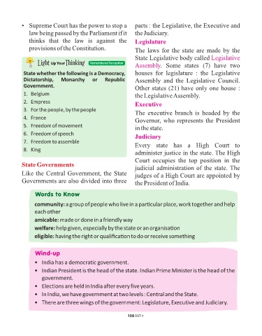 • Supreme Court has the power to stop a parts : the Legislative, the Executive and