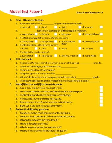 Model Test Paper-1 Based on Chapters 1-9