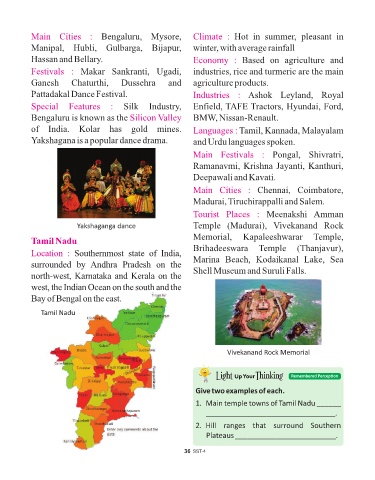 Main Cities : Bengaluru, Mysore, Climate : Hot in summer, pleasant in