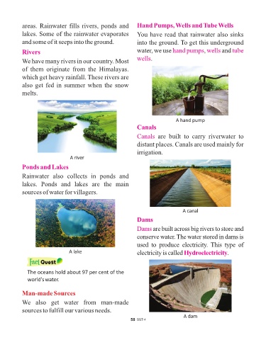 areas. Rainwater fills rivers, ponds and Hand Pumps, Wells and Tube Wells