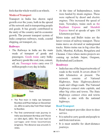feels that the whole world is on wheels. • At the time of Independence, trains