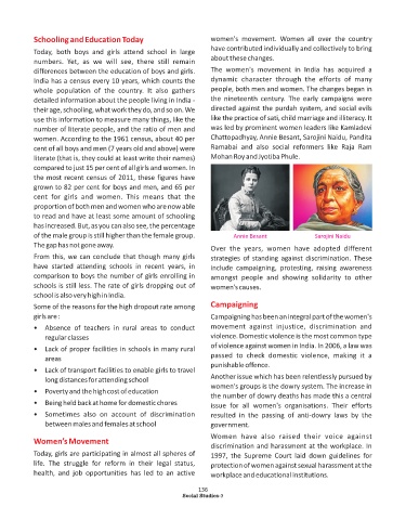 number of literate people, and the ratio of men and was led by prominent women leaders like Kamladevi