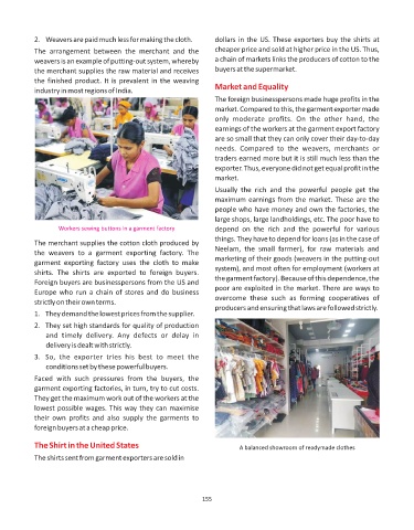 2. Weavers are paid much less for making the cloth. dollars in the US. These exporters buy the shirts at