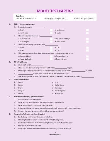 History : Chapter (5 to 8) Geography : Chapter (5-7) Civics : Chapter (5 to 8)
