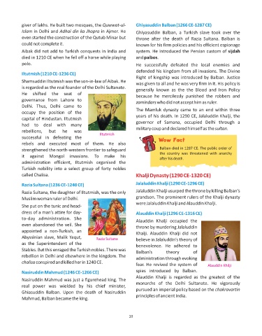 giver of lakhs. He built two mosques, the Quwwat-ul- Ghiyasuddin Balban (1266 CE-1287 CE)