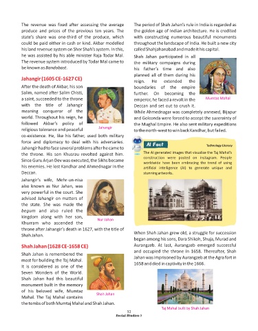 The revenue was fixed after assessing the average The period of Shah Jahan’s rule in India is regarded as