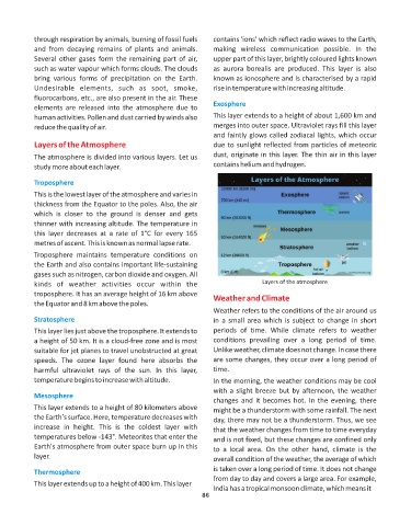 human activities. Pollen and dust carried by winds also This layer extends to a height of about 1,600 km and